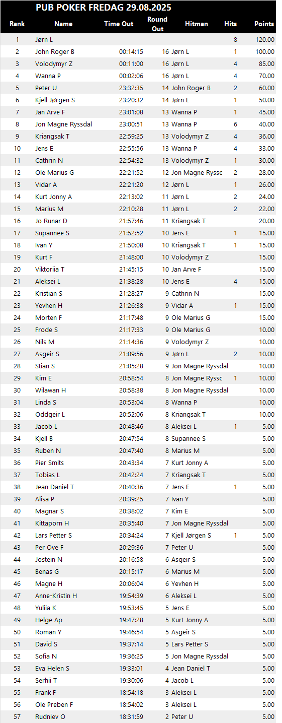 Topp 3 - Pub Poker 29.08.2025
