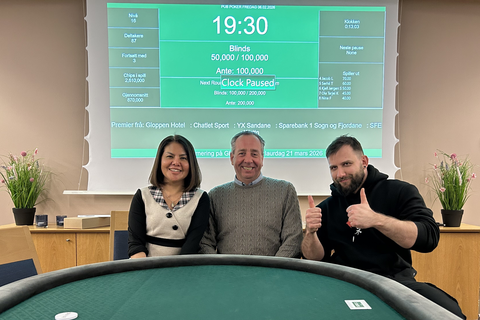 Fredag 6. februar starta vi årets Pub Poker-serie, og for ein pangstart det vart! Med heile 87 deltakarar sette vi ny deltakarrekord på Gloppen Hotell – og måtte ta i bruk 10 bord for å få plass til alle.